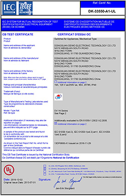 德傲微動開關CQC CB CE證書正式下發